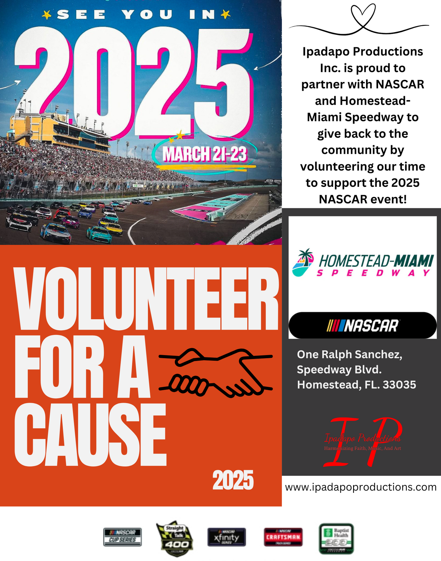 Ipadapo Productions Inc. partnering with Homestead-Miami Speedway for the March 2025 NASCAR Cup Series