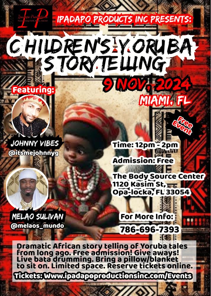 This is a charity event for children interested in learning about the Yoruba culture. Hosted at The Body Source Center in Miami on November 9, 2024