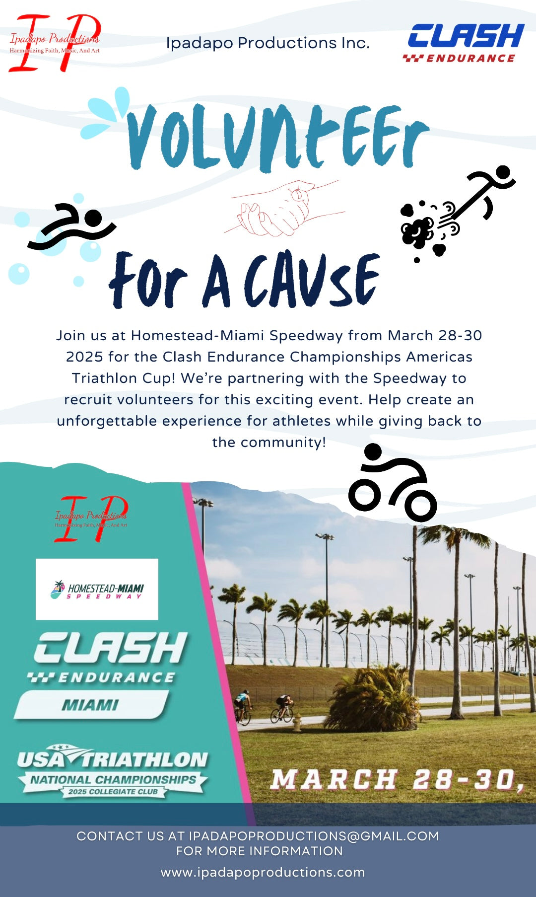 Ipadapo Productions Inc. with Homestead-Miami Speedway for the March 2025 Clash Endurance Championship Americas Triathlon Cup